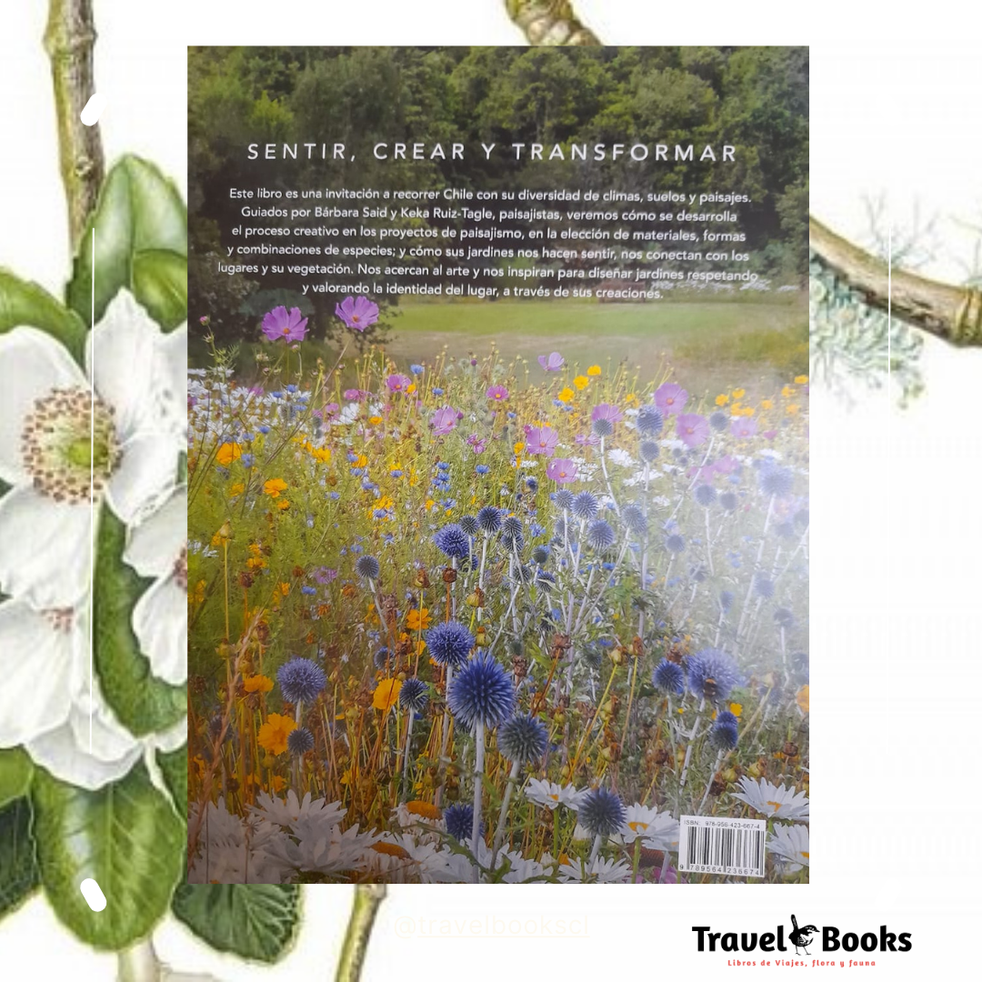 Este libro es una invitación a recorrer Chile con su diversidad de climas, suelos y paisajes Guiados por Bárbara Said y Keka Ruiz- Tagle, paisajistas, veremos cómo se desarrolla el proceso creativo en los proyectos de paisajismo, en la elección de materiales, formas y combinaciones de especies; y cómo sus jardines nos hacen sentir, nos conectan con los lugares y su vegetación. Nos acercan al arte y nos inspiran para diseñar jardines respetando y valorando la identidad del lugar, a través de sus creaciones.